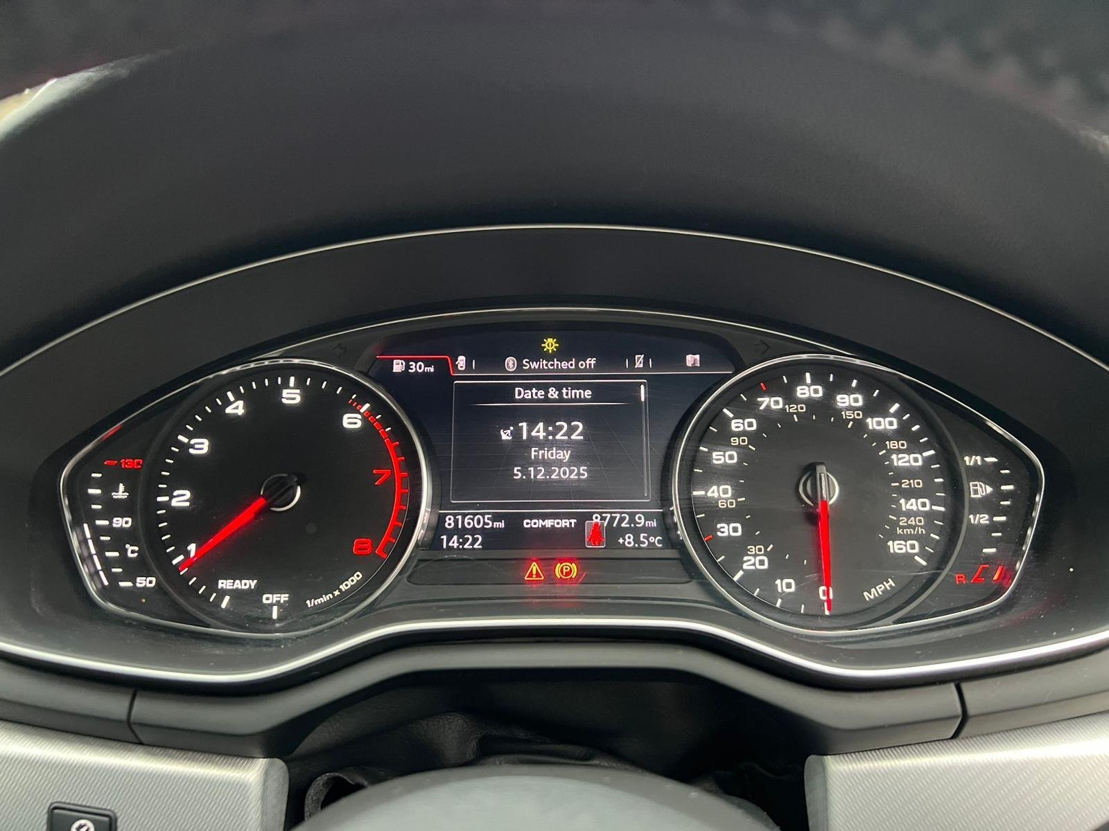 This 2018 Audi A4 Avant TFSI Sport boasts a full dealership service history and has had only one owner, ensuring excellent provenance. This Euro 6 compliant 1.4 litre petrol model comes with a clear vehicle history check and a 6 month warranty for your peace of mind. It features a Light and Rain Sensor for automatic headlight activation, Parking System Plus with front and rear sensors for easier manoeuvring, and Deluxe 3-Zone Electronic Climate Control for personalised comfort. The Bluetooth interface allows for seamless connectivity on the go.